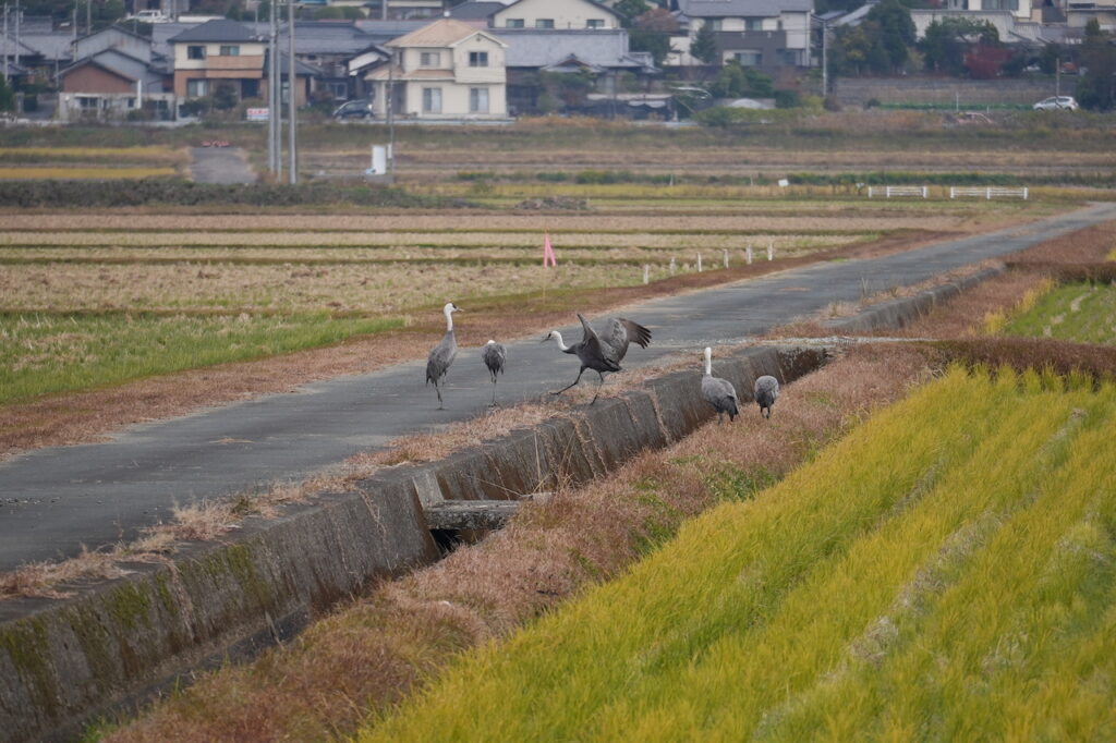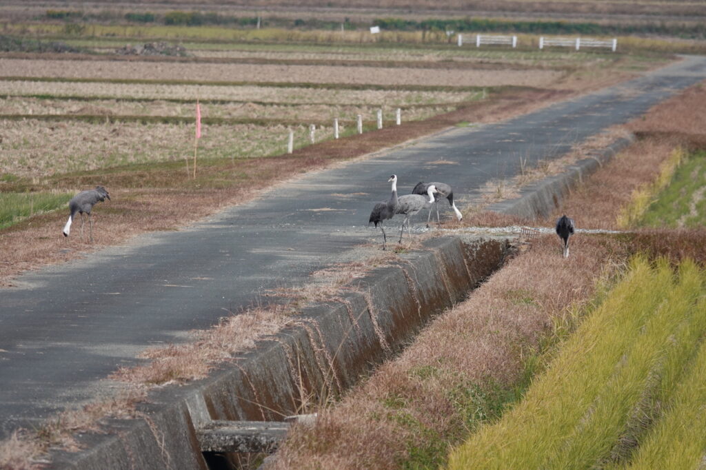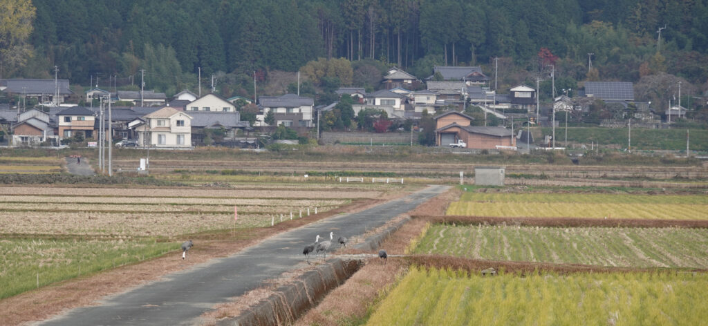2日の午後は農作業を終えた田んぼではるか遠くエサをついばむ姿をかろうじて観察できただけでした。